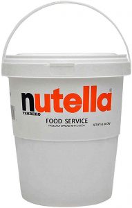 At Costco you can buy this huge tub of nutella. It contains nearly 7 pounds of chocolaty-hazelnut spread. We use nutella to make banana/nutella crepes. How long will that tub last us? Is it too big and we will have it in the pantry for years? What if I made one huge crepe for the whole tub of stuff? How big would that be?